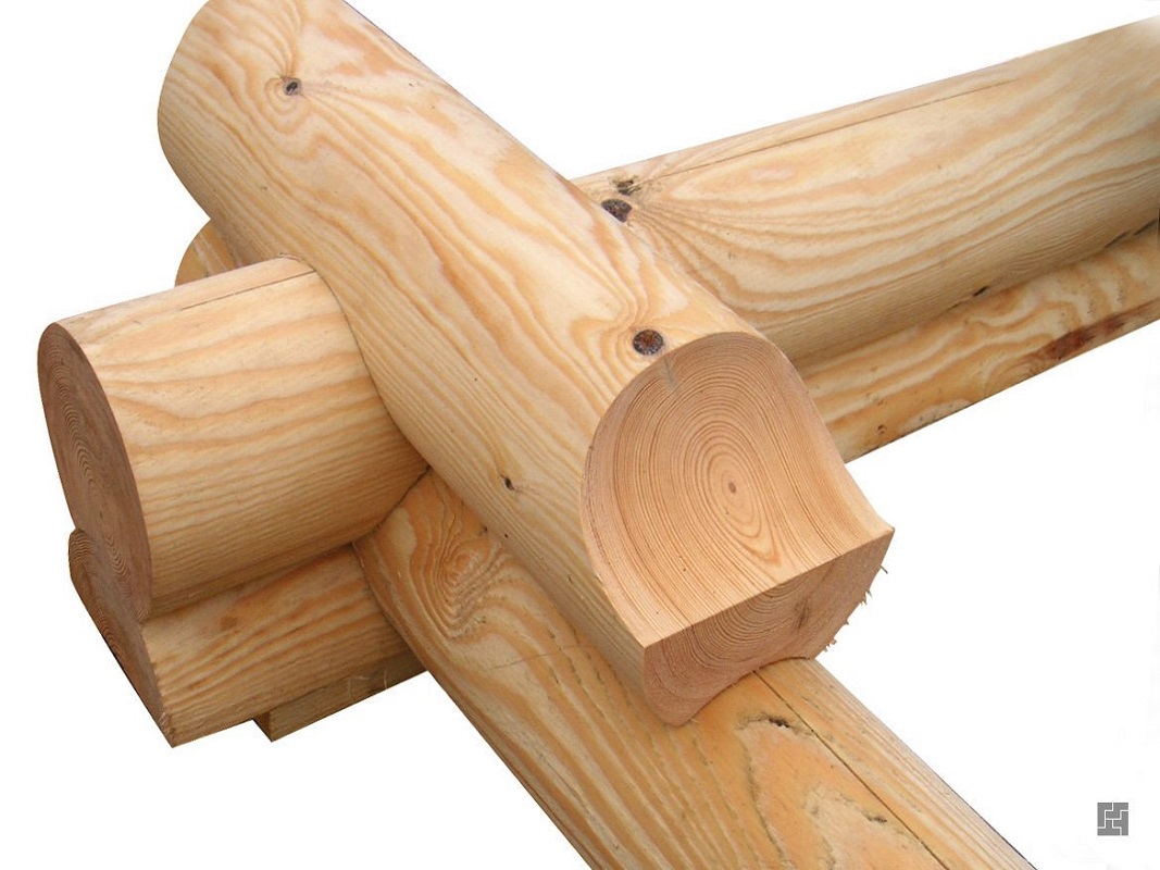 При сборке бревен в тепловые пазы укладывается межвенцовый утеплитель. Бревна соединяются деревянными нагелями.