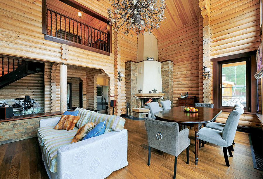 Накопленный опыт и современные отделочные материалы позволяют реализовывать в домах из оцилиндрованного бревна самые разнообразные архитектурные и интерьерные решения.
