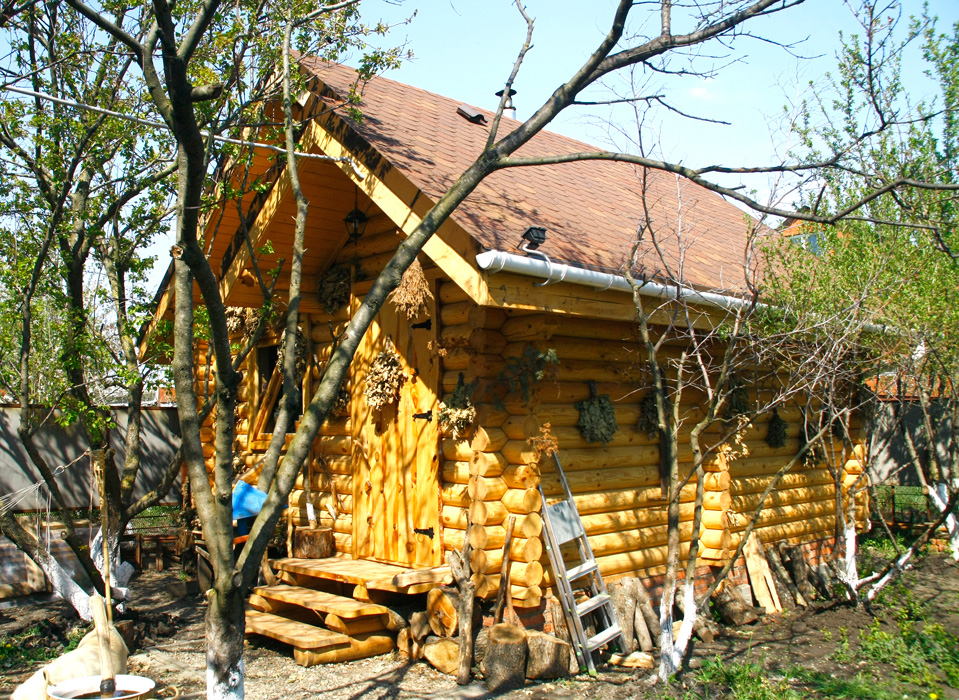 Большой популярностью пользуются русские бани из оцилиндрованного бревна.