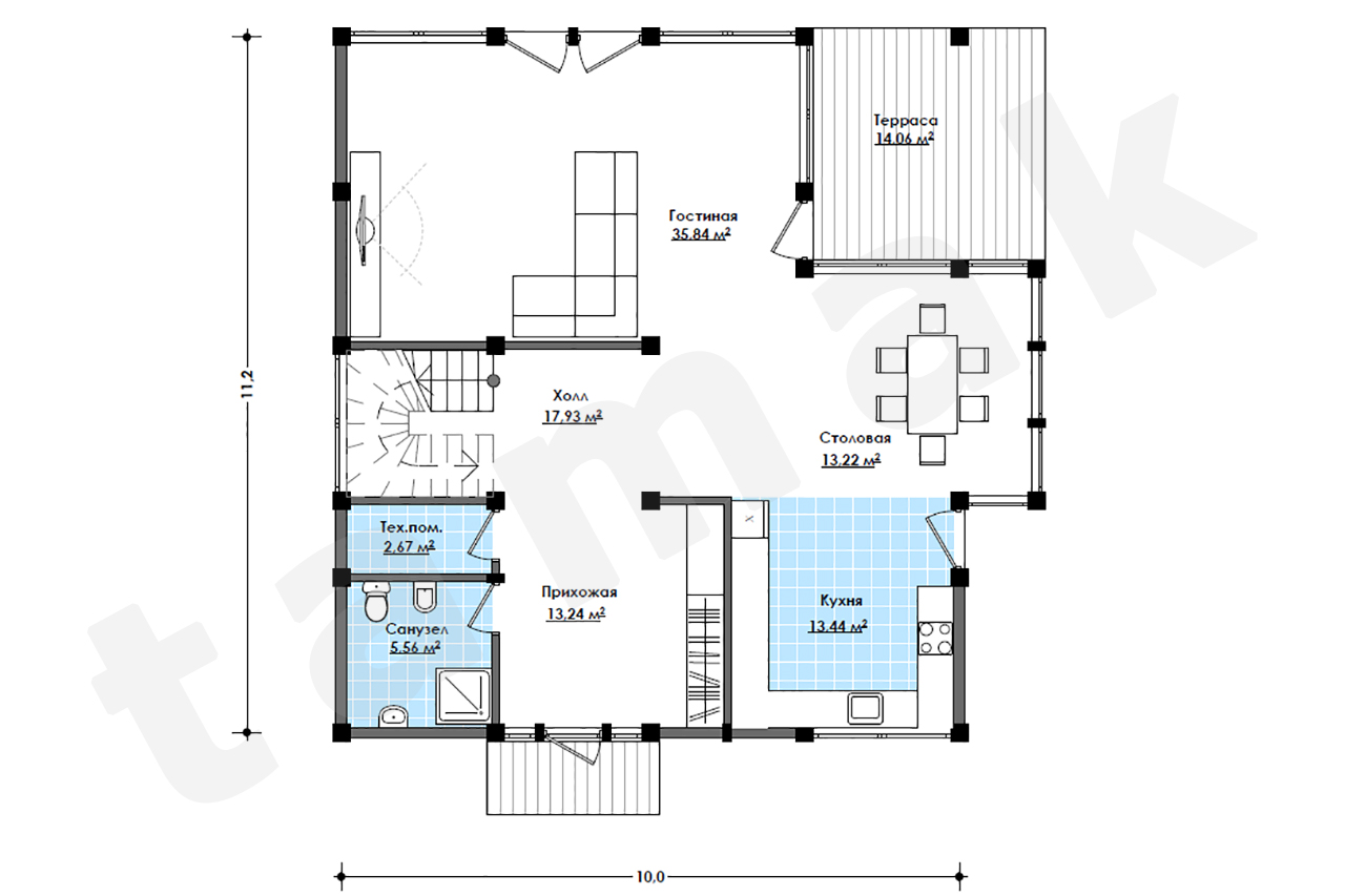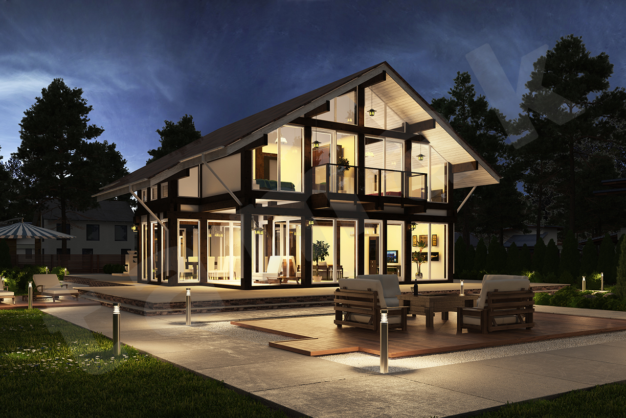 силовой каркас - деревянные клееные балки, ель, визуального качества, с запиловкой на станке Хундегер