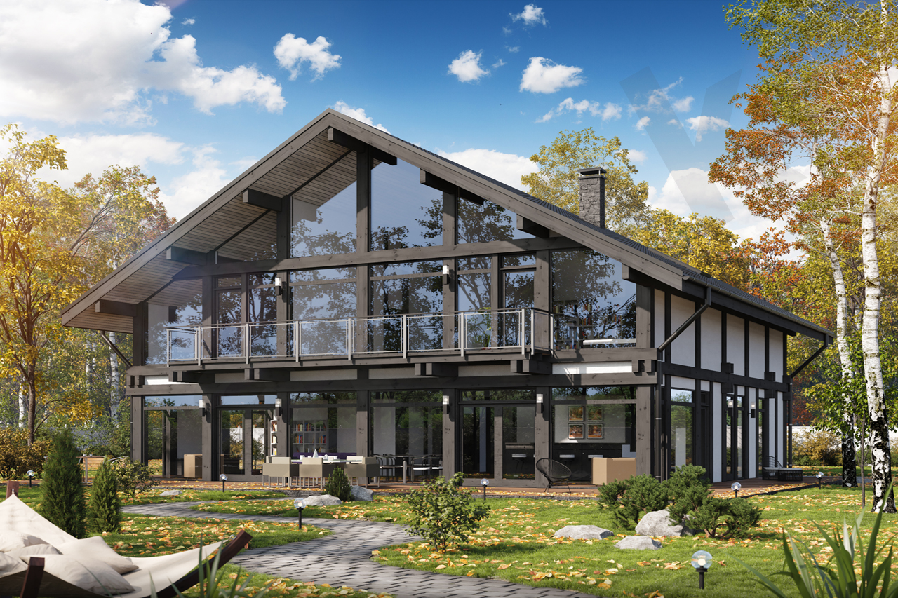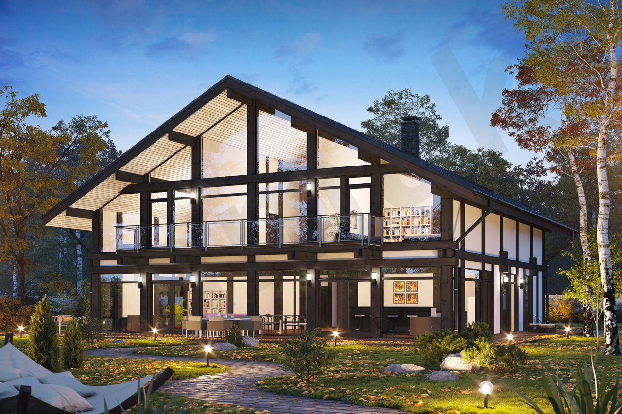 силовой каркас - деревянные клееные балки, ель, визуального качества, с запиловкой на станке Хундегер