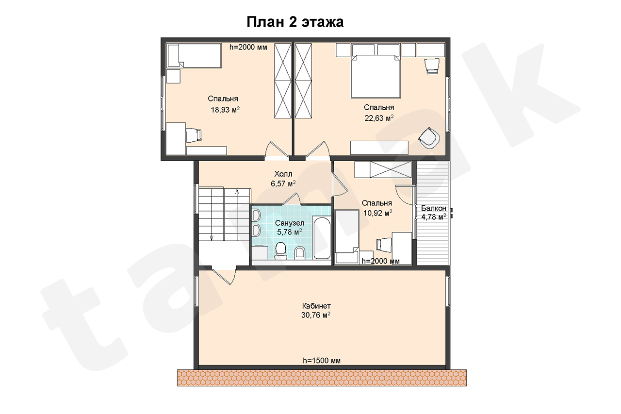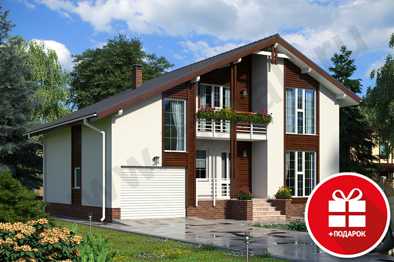 Планировка дома продумана до мелочей. На первом этаже размещается гостиная, кухня, кладовая, гардеробная комната, холл, тамбур. Кухня и гостиная являются отдельными помещениями, но соединяются порталом с раздвижными дверями, который при желании объединяет оба помещения модифицируя первый этаж в студию. Все пространство под лестницей используется в качестве кладовой практично используя каждый квадратный метр. К дому примыкает гараж, который имеет дополнительный вход непосредственно в дом через тамбур и техническое помещение, которое соединяется с гаражом и имеет отдельный дополнительный вход с тыльной стороны дома. На втором этаже расположились три спальни, одна из которых имеет выход на уютный балкон, большой санузел и холл. Над гаражом расположен просторный кабинет, который может быть использован как библиотека. Большие панорамные окна наполнят дом светом и солнечным теплом.