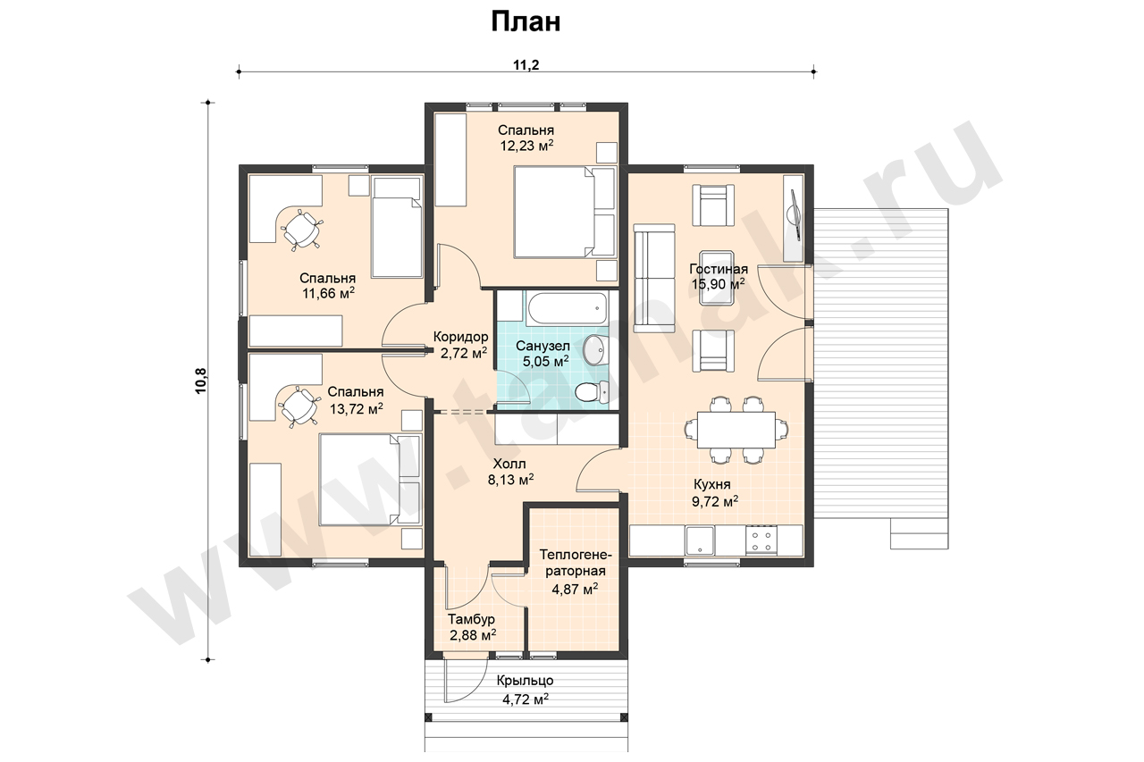 Коттедж общей площадью 91,6 м2 выполнен в средиземноморском стиле, где большая дружная семья может собраться под одной крышей. Коттедж предназначен для комфортного проживания 4-5 человек.